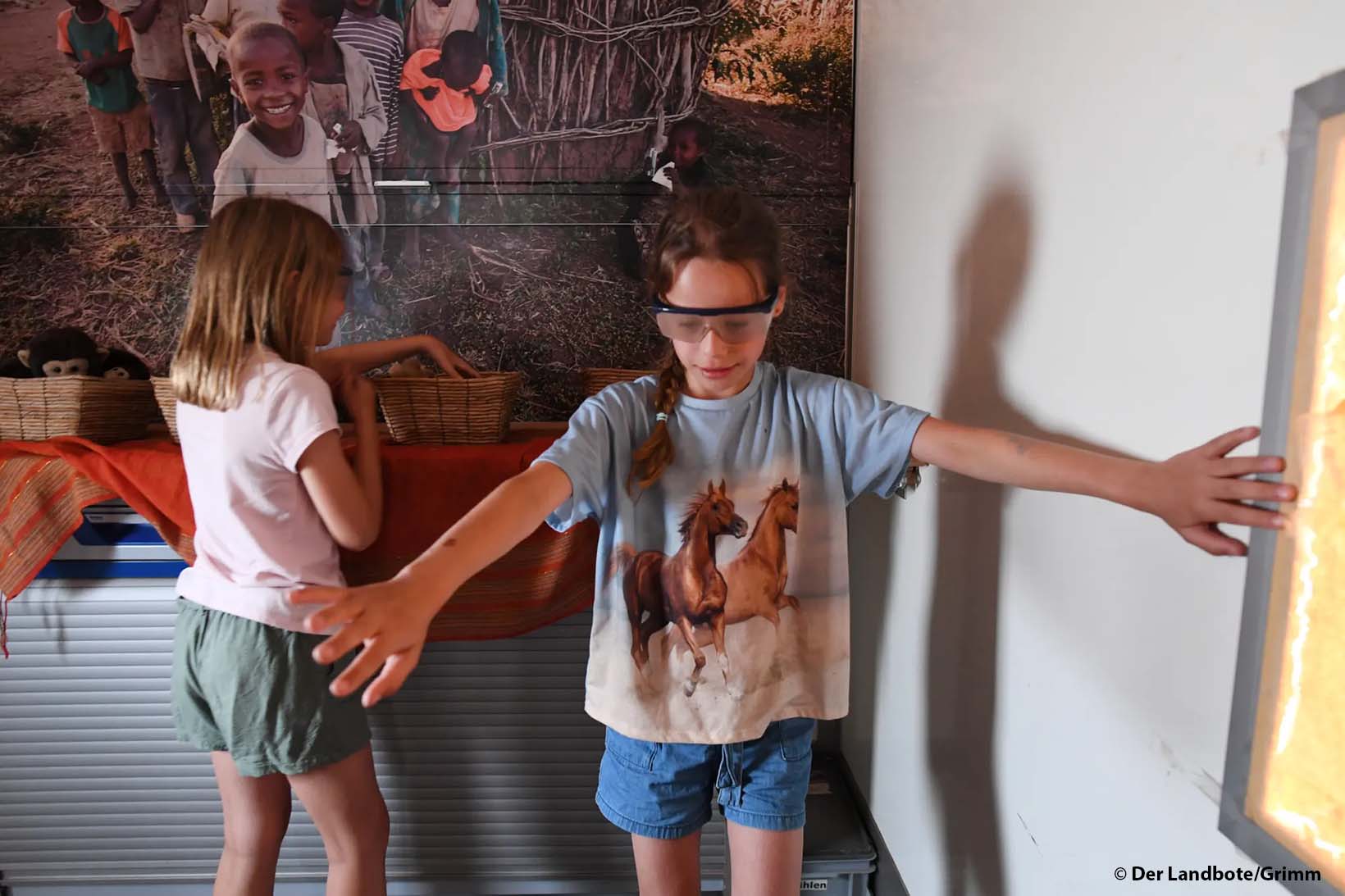 Während die Kinder durch das Mobil gehen, müssen sie erraten, was sich darin befindet. Das ist gar nicht so einfach: «Für mich hat es sich angefühlt, als würde man durch den Wald gehen», sagt die neunjährige Anna. Sie habe auf dem Boden Steine und an den Wänden Blätter ertasten können. Tatsächlich sind im Mobil an verschiedenen Stellen Pflanzen aus Plastik angebracht. Die neunjährige Rahel glaubt, etwas Flauschiges erfühlt zu haben. «Wahrscheinlich ein Kuscheltier, aber sicher bin ich mir nicht.»