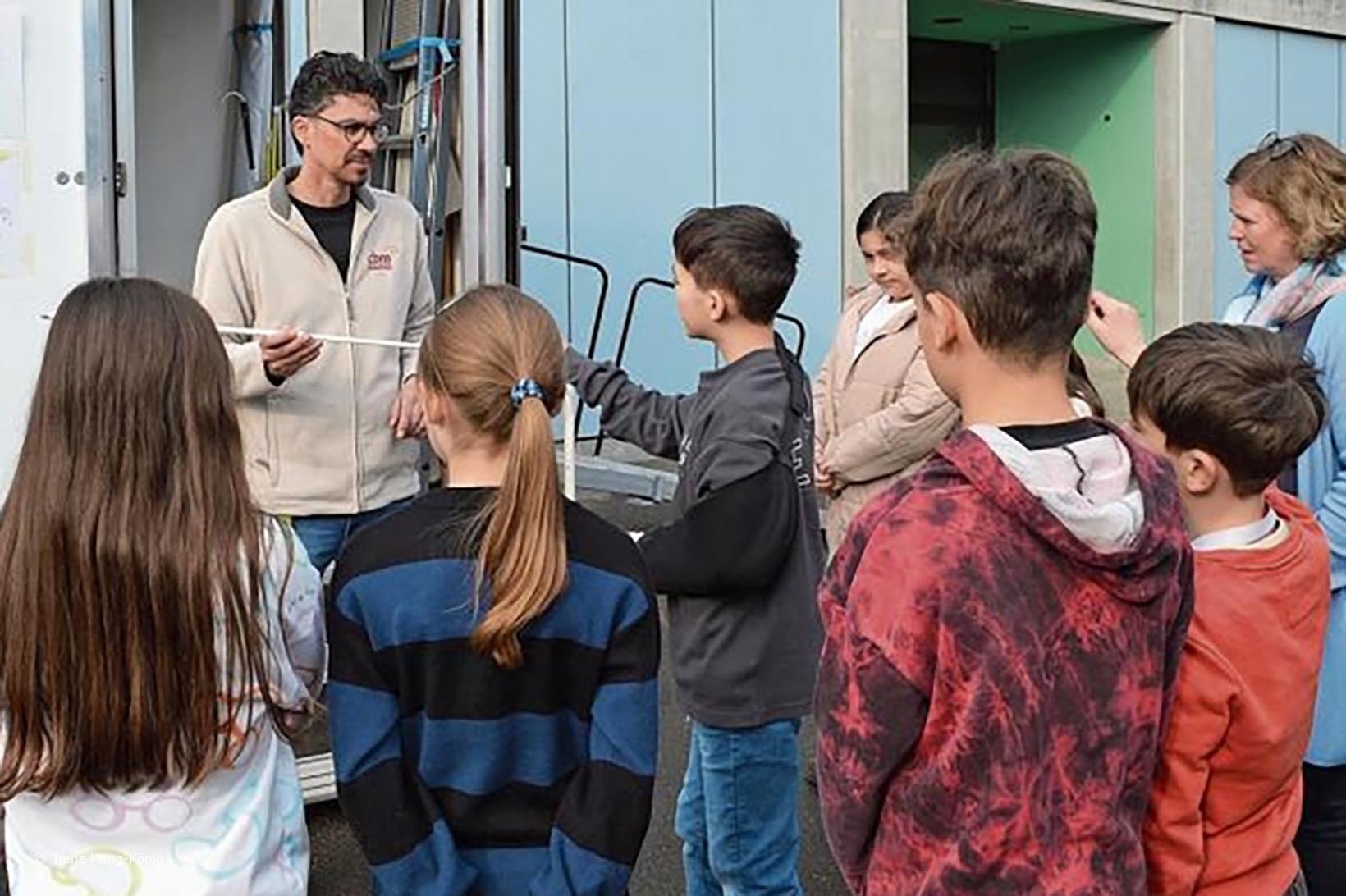 Ein wenig später stehen die Kinder vor dem Erlebnismobil der Blindenmission: «Ihr bekommt jetzt eine Brille, die den Grauen Star im Endstadium nachmacht. Dann könnt ihr durchs Mobil gehen und Dinge ertasten. Die Brille dürft ihr nicht absetzen.» Nachdem sich die Ersten durch den Parcours im Mobil getastet haben, greifen sie zum Blindenstock und führen ihn über den Boden.
