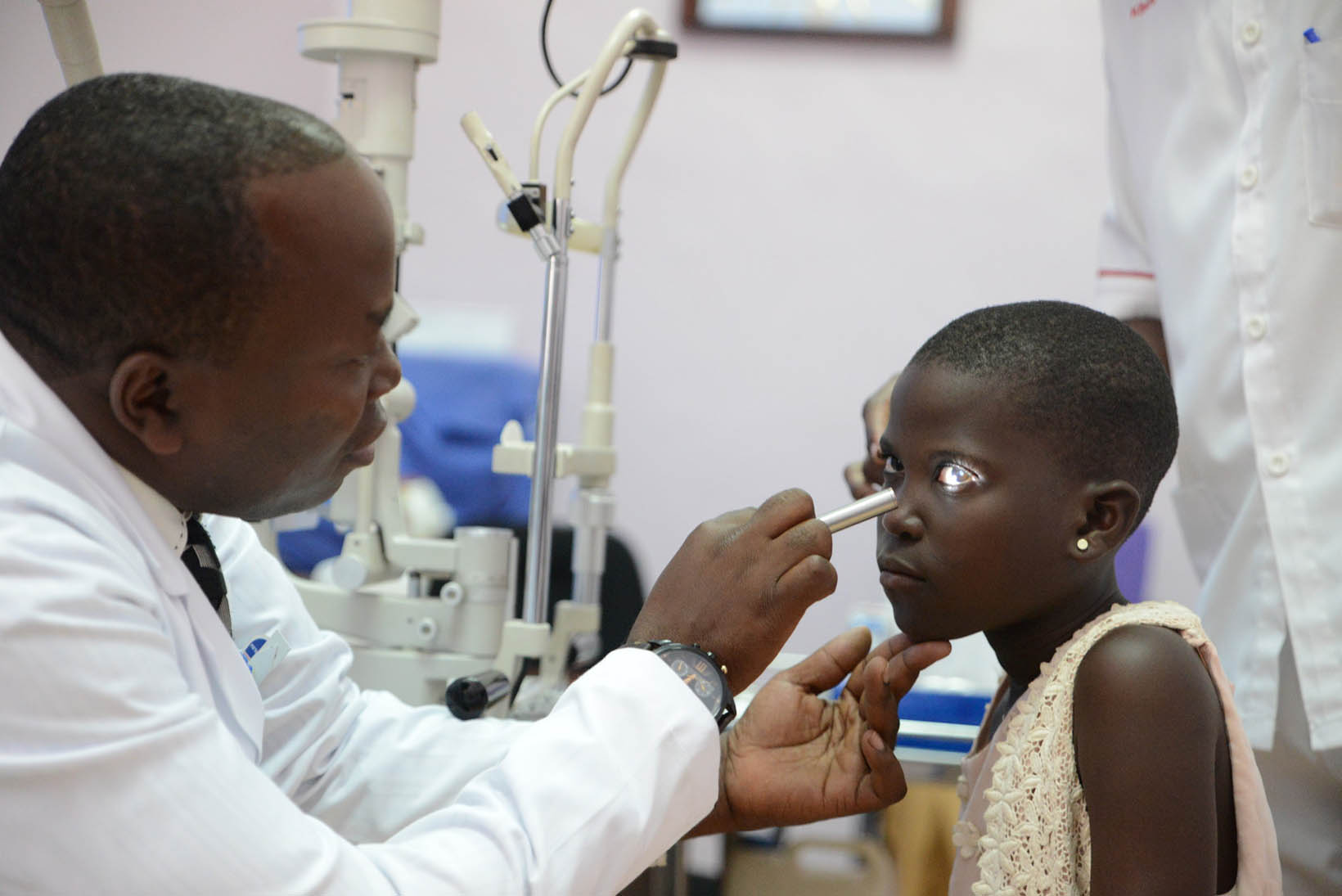 Da wird ein auswärtiger Pfarrer im Gottesdienst auf die Familie aufmerksam. Er rät ihnen zur CBM-geförderten Augenklinik Mengo in Kampala. Beidseitiger Grauer Star lautet dort die Diagnose. Drei Wochen später ersetzt Augenchirurg Dr. Lisbon Aliraki innerhalb kurzer Zeit beide trübe Augenlinsen durch künstliche: «Die CBM hat mir die Ausbildung zum Augenchirurgen ermöglicht, wofür ich sehr dankbar bin. Sie hat mich auch mit Apparaten ausgestattet, die ich schon seit 16 Jahren einsetze. Ausserdem finanziert die CBM unseren Fonds für arme Patientinnen und Patienten.» So musste auch Elizabeth Kambe nichts für die Operation ihrer Tochter bezahlen.