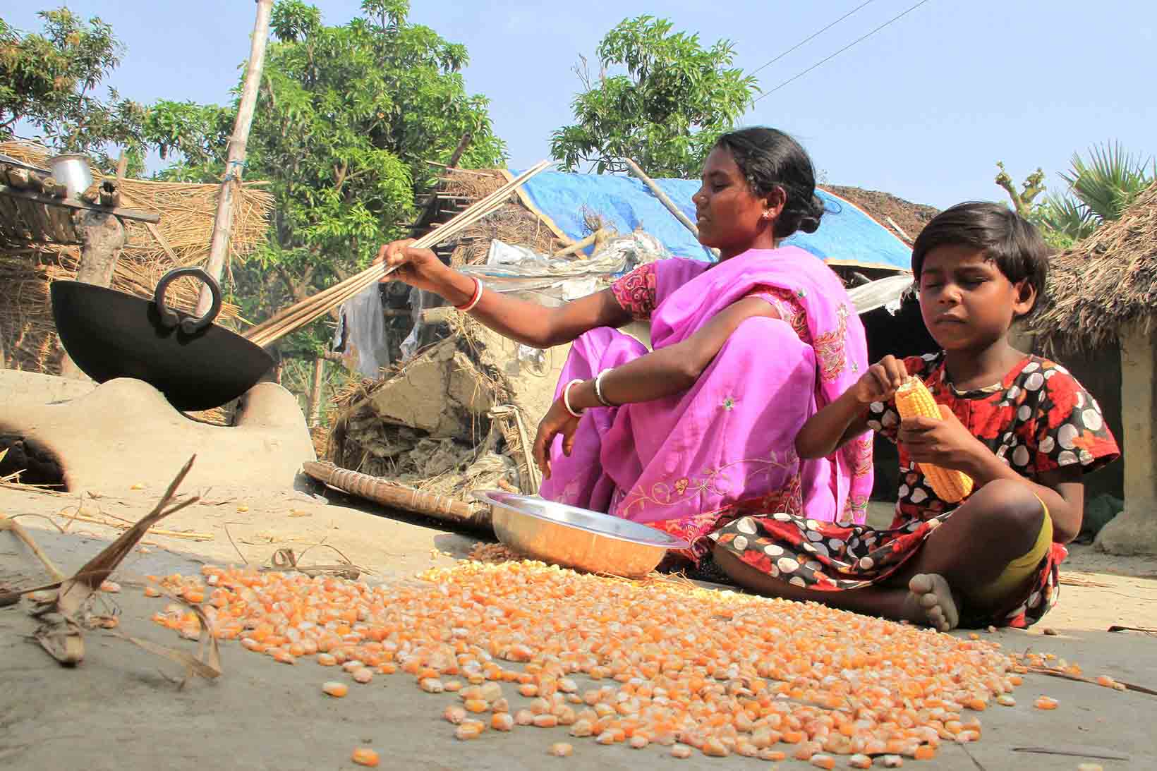 Suman hilft ihrer Mutter, Maiskolben zu entkörnen. Längst sind die anderen Kinder des nepalesischen Fischerdorfes in der sechs Kilometer entfernten Schule. Am Ende der ersten Klasse erkannte Suman nichts mehr an der Wandtafel. Seitdem bleibt ihr nichts anderes übrig, als die meiste Zeit zu Hause zu sitzen. «Ich möchte so gerne wieder zur Schule gehen», sagt die 8-Jährige traurig.