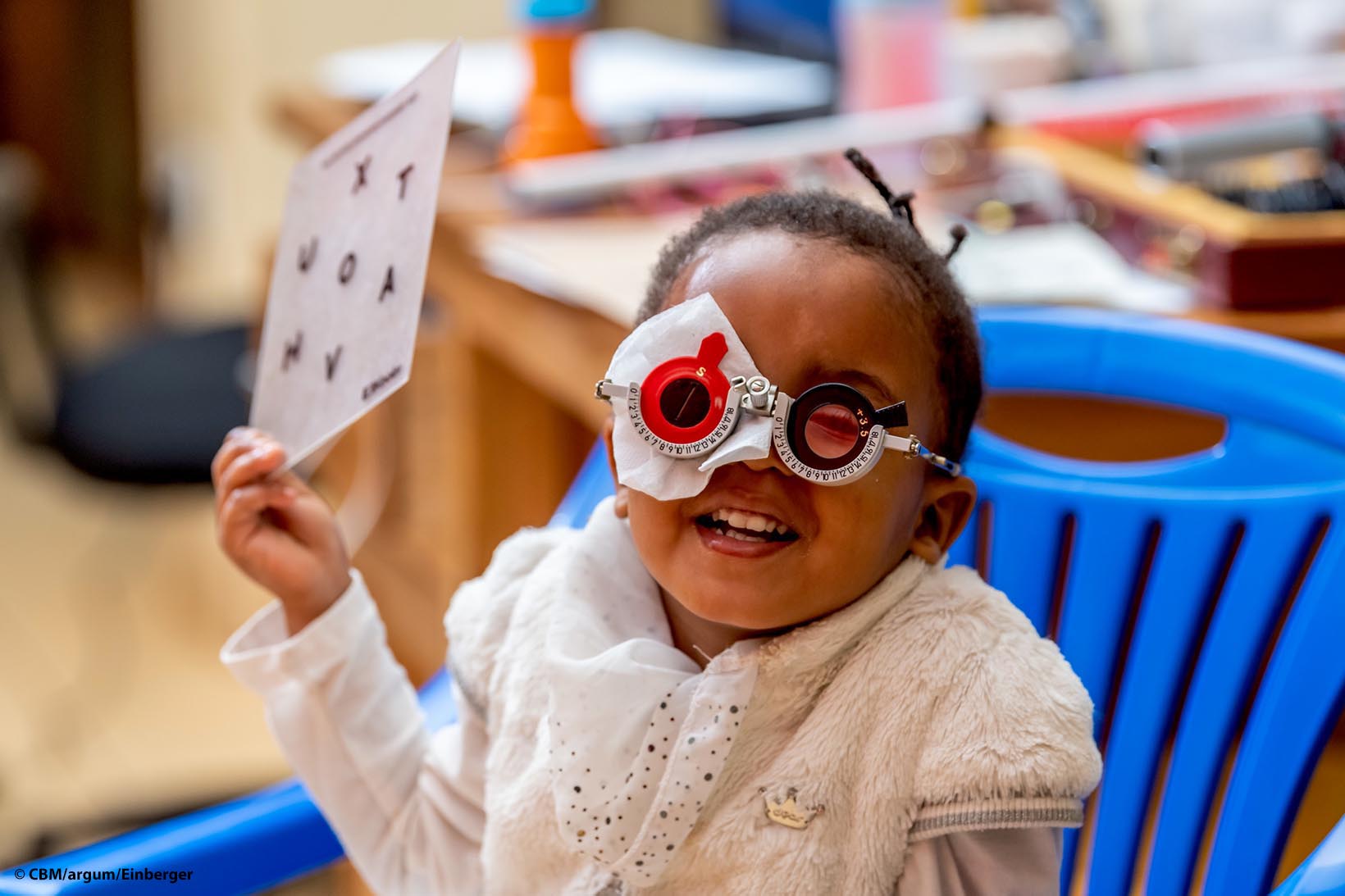Als Nachbarn erzählen, in der nahe gelegenen Stadt Moshi würden Kinder von in Armut lebenden Familien kostenlos behandelt, schöpft Frimina Mselle Hoffnung. Sogleich begibt sie sich mit ihrer Tochter ins CBM-geförderte Kilimanjaro Christian Medical Center. Im Wartsaal vor dem Untersuchungszimmer setzt sich Cathleen auf ein Plastikauto und fährt herum. Als die Mutter sie einmal ruft, steigt sie orientierungslos über die Bänke. Ihre Augen können die Mutter nicht von den anderen Personen unterscheiden.