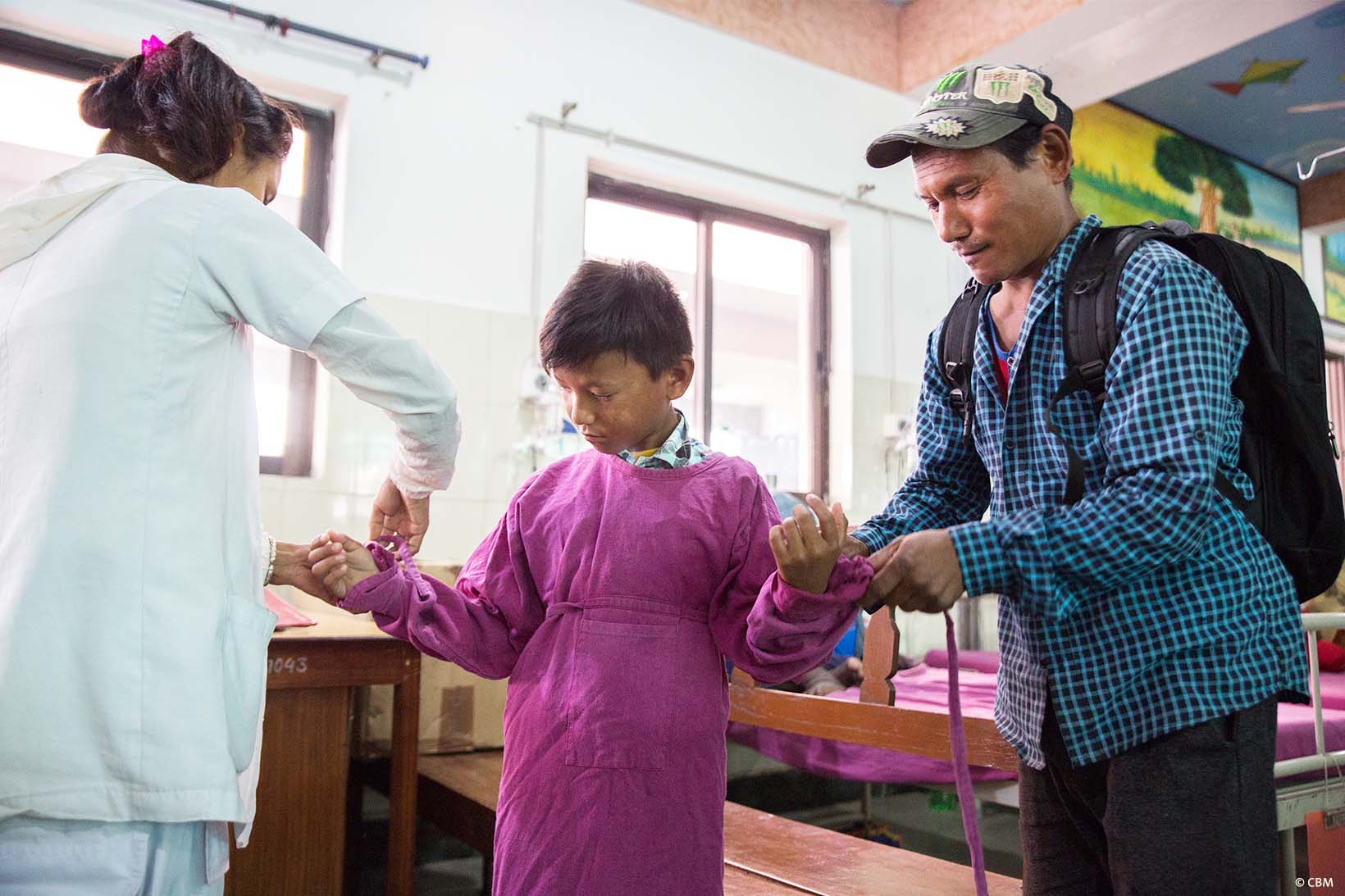 Als die beiden das Krankenhaus verlassen, winkt Dipendra mit einem breiten Lächeln im Gesicht und geht an der Hand seines Vaters zurück in sein Dorf.
