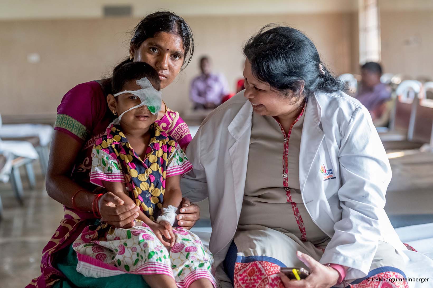 Ausser sich vor Freude war Sugana Mongam daher von der überraschenden Nachricht eines Nachbarn: Ein augenmedizinisches Team komme in ein Dorf der Region und behandle kostenlos. Ohne zu zögern, begibt sie sich mit Alekhya dahin. Das mobile Team der CBM-geförderten Klinik Sankar stellt in beiden Augen den Grauen Star fest. Per Bus bringt es alle Erkrankten zur vier Fahrstunden entfernten Klinik bei Vishakhapatnam an der Ostküste. Dort wird zunächst die Linse des linken Auges durch eine künstliche ersetzt. Nachdem es gut verheilt ist und Wochen später sich dessen maximale Sehkraft entwickelt hat, wird Alekhya auch im zweiten Auge am Grauen Star operiert.