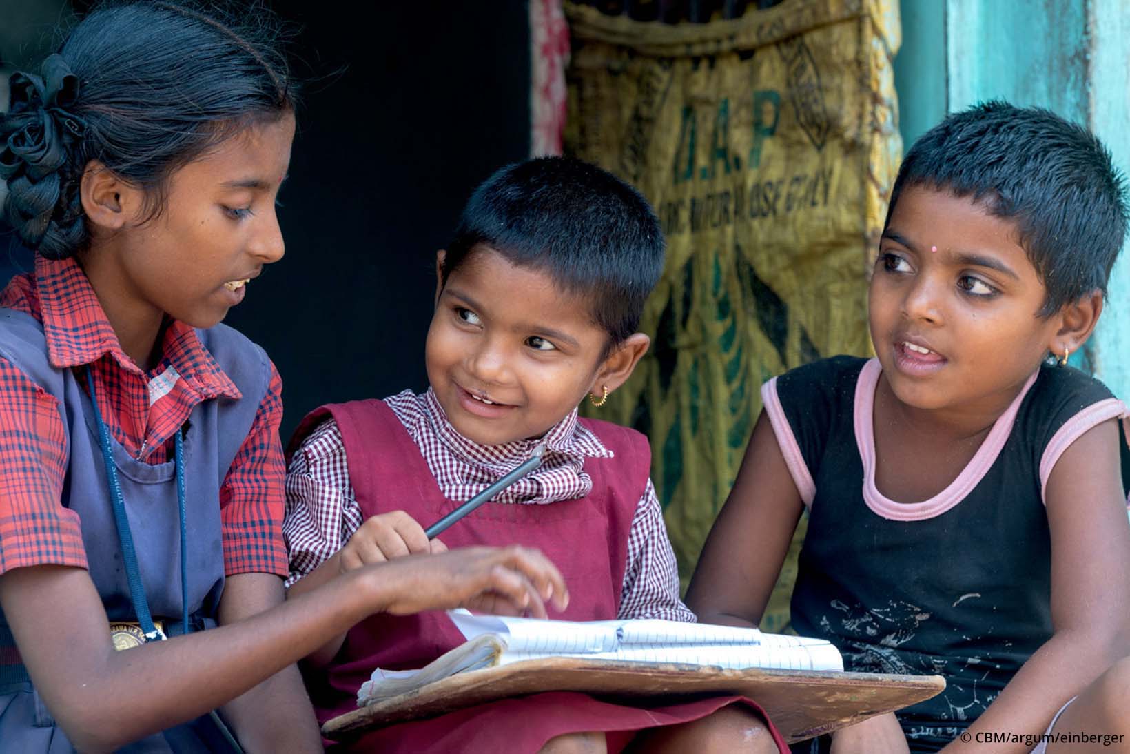 Wieder zu Hause, zeigt ein Nachbarmädchen Alekhya Schulbücher. Mit strahlenden Augen taucht Alekhya ein und betrachtet Ziffern und Buchstaben. Diese versucht sie fröhlich singend nachzuschreiben, was schon auf Anhieb ansprechend gelingt. «Sie schreibt bereits A und B», freut sich die Mutter von Hoffnung erfüllt. «Ich möchte, dass Alekhya in der Schule viel lernt. Sie soll einst ein besseres Leben haben als ihre Eltern!»