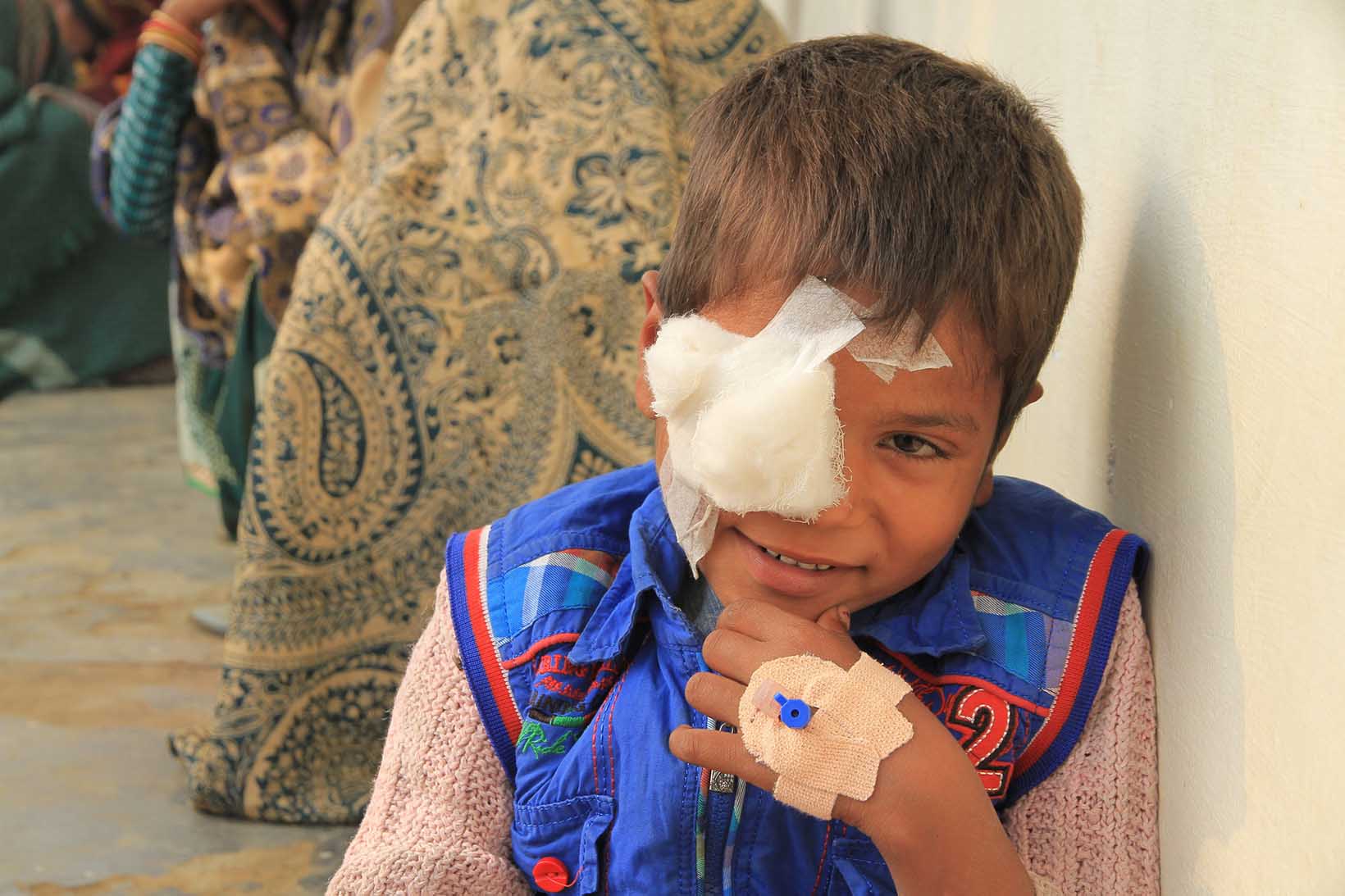 Nachdem die Entzündung in Krishnas linkem Auge bereits nach einer Woche abgeklungen ist, reisen seine Eltern mit ihm per Bus und Rikscha in die 80 Kilometer entfernte CBM-geförderte Augenklinik. In der Klinik folgt die Bestätigung: Fortgeschrittener Grauer Star im einen, sehr grosse Sehschwäche beim anderen Auge. Es folgen weitere Untersuchungen. Am Abend sind Krishna und seine Eltern völlig erschöpft, aber glücklich: Morgen endlich folgt die lange ersehnte Operation!